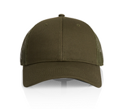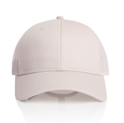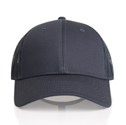 100% cotton front & peak, 100% recycled polyester mesh back